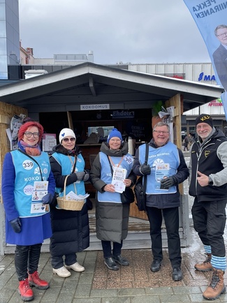 ![]() Vaalityötä tehdään porukalla - niin myös lauantaina 22.3. | ![]() Ihmisten kohtaaminen on vaalityön suola. Kuopion torilla oli lauantaina 15.3. runsaasti keskustelukumppaneita. |