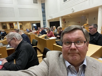 ![]() Puoluerajat ylittävä yhteistyö on kuntapolitiikassa välttämätöntä. Kuvassa Pekan kanssa Tiina Kaarinen (sd.) ja Harri Auvinen (vihr.), jotka ovat tulleet vuosien varrella Pekalle hyviksi yhteistyökumppaneiksi niin kaupunginvaltuustossa kuin kaupunginhallituksessakin. | ![]() Pekka edusti kokoomusta Särkiniemen koululla 27.3. pidetyssä vaalipaneelissa. Koulu on sama, josta Pekka lähti "maailmalle" 50 vuotta sitten. Kaikki panelistit olivat yhtä mieltä siitä, että alueen lapset ansaitsisivat jo uuden koulun. |