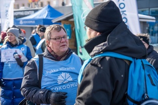 ![]() Vaalityötä tehdään porukalla - niin myös lauantaina 22.3. | ![]() Ihmisten kohtaaminen on vaalityön suola. Kuopion torilla oli lauantaina 15.3. runsaasti keskustelukumppaneita. |
