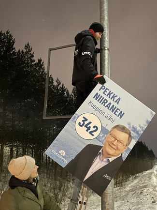 ![]() Pekan vaalikampanja alkoi torstaina 13.3., kun ensimmäiset vaalimainokset ilmestyivät Kuopion katukuvaan. |